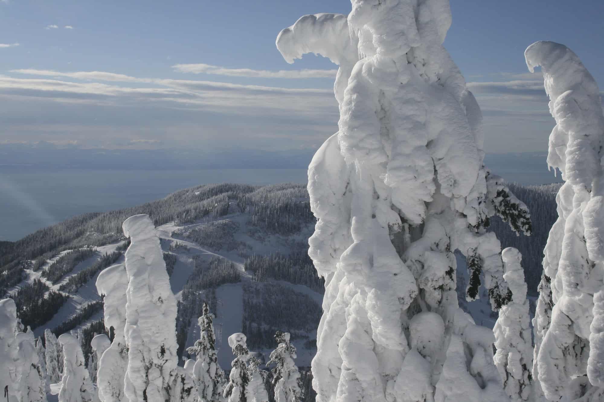 This is a stunning winter loop trail through snow-covered pine forests around Lightning Lake in E.C. Manning Provincial Park. Hikers can do a shortened loop by crossing the Rainbow Bridge at its narrowest point. The peaceful forested trail offers views of the lake and the adjacent hills, including Frosty Mountain. Dogs are permitted on-leash. You will likely want snowshoes and/or microspikes.